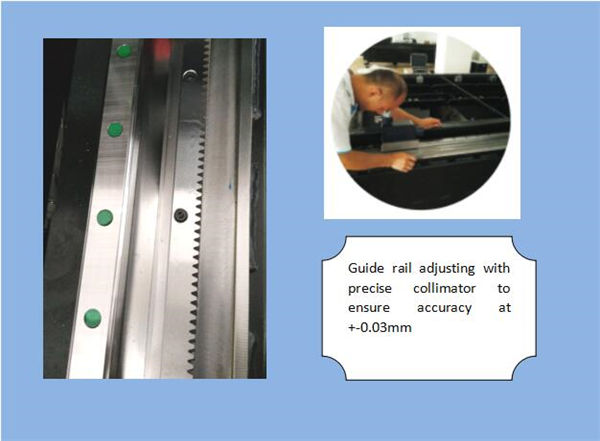 | Název:Střídavý servomotor a ovladač Importovaný servomotor (osa Y poháněný dvěma servomotory) spolu s sofistikovaným planetovým reduktorem zajišťuje stabilní, přesný a spolehlivý pohon. |